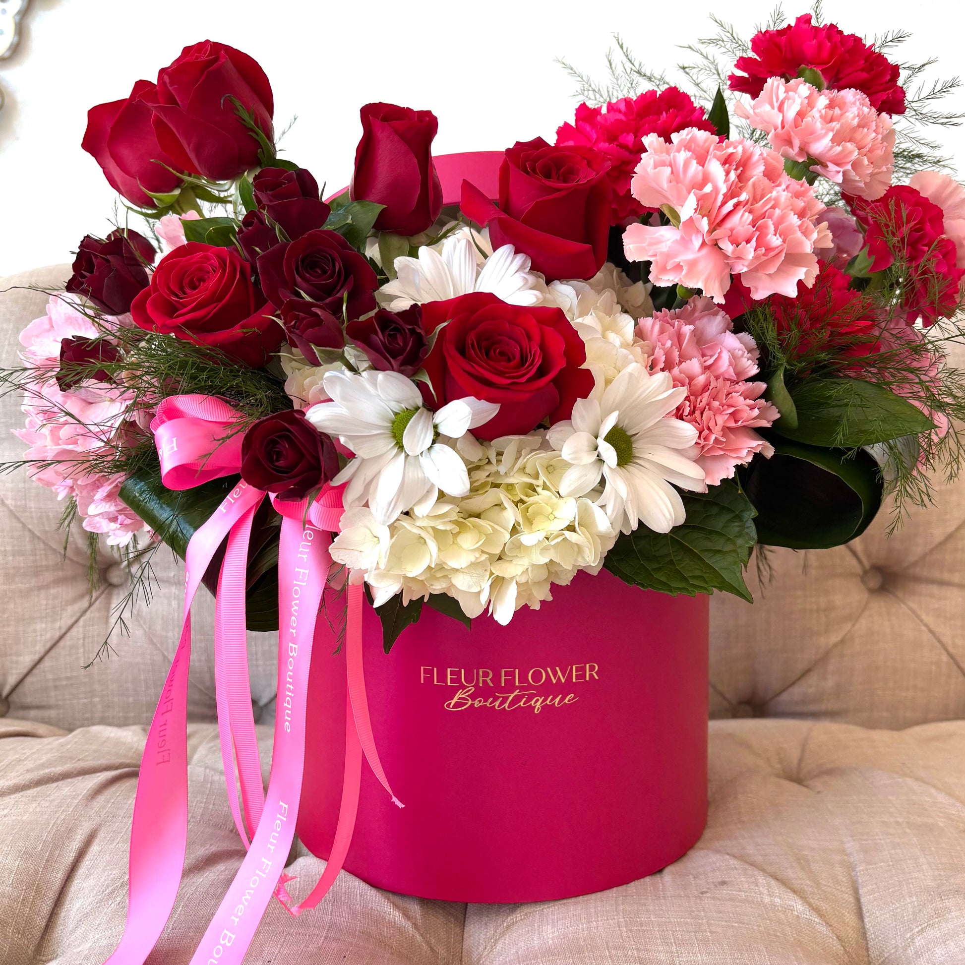 1. Isabella is a charming floral arrangement with red, pink roses and mix flowers. Presented in a 9x8 inches luxury pink box. This arrangement is perfect for adding a touch of color and sophistication to any occasion.
